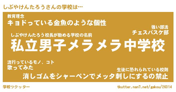 | 男性向けラノベタイトル風あだ名 | 『しぶやけんたろうの憂鬱』 |