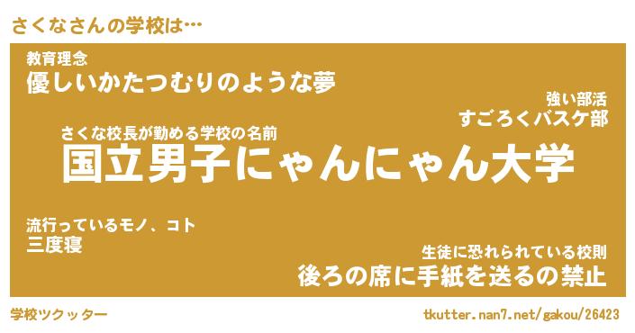 | 女子向けラノベタイトル風あだ名 | 『さくな姫と円卓の騎士』『さくな恋絵巻』 |