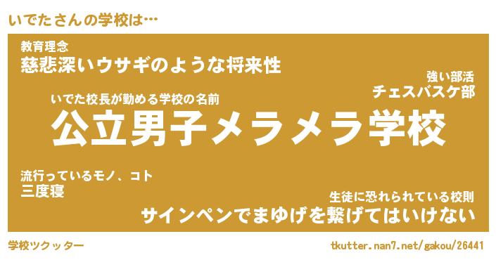 | 女子向けラノベタイトル風あだ名 | 『いでた姫と円卓の騎士』 |