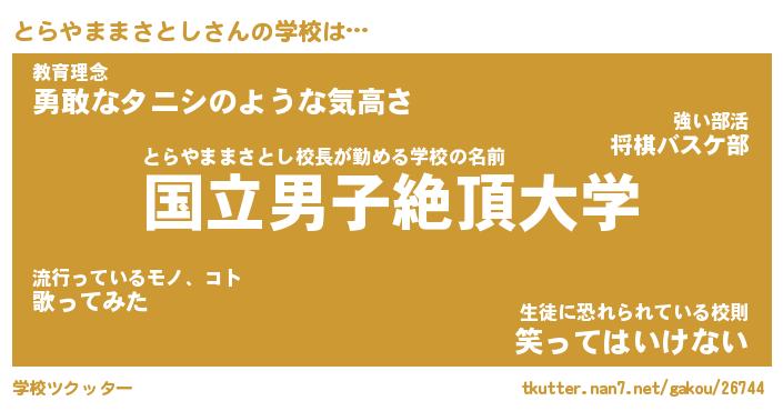 | 男性向けラノベタイトル風あだ名 | 『とらやままさとしの憂鬱』 |