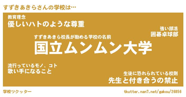 | ヒーロー風カッコイイあだ名 | 『スーパースズキアキラ』『暗黒騎士スズ』 |