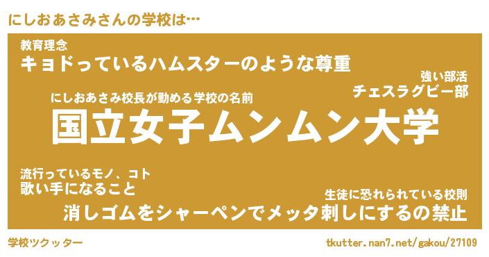 | ポケモン風あだ名 | 『ニシチュウ』『ニシオダネ』 |