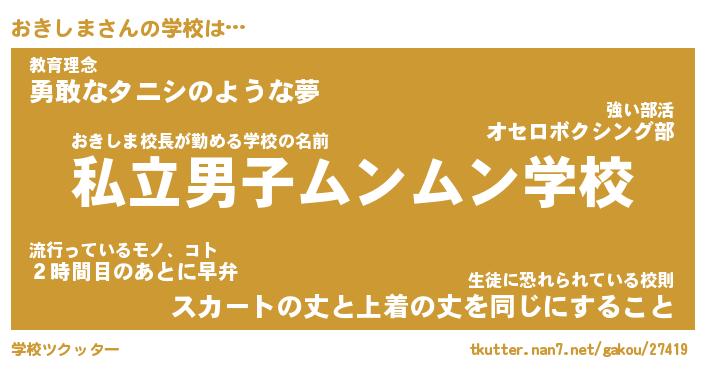 | 男性向けラノベタイトル風あだ名 | 『おきしまの憂鬱』 |