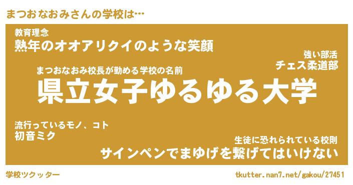 | 肩書あだ名 | 『まつおなおみ御曹司』 |