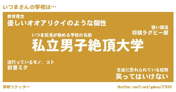 | 男性向けラノベタイトル風あだ名 | 『いつまの憂鬱』 |