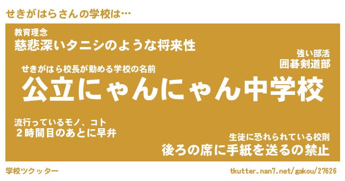 | 男性向けラノベタイトル風あだ名 | 『せきがはらの憂鬱』 |
