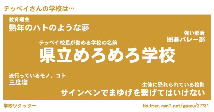 | テッペイ先生が勤める学校名『国立しゃくれ小学校』 |