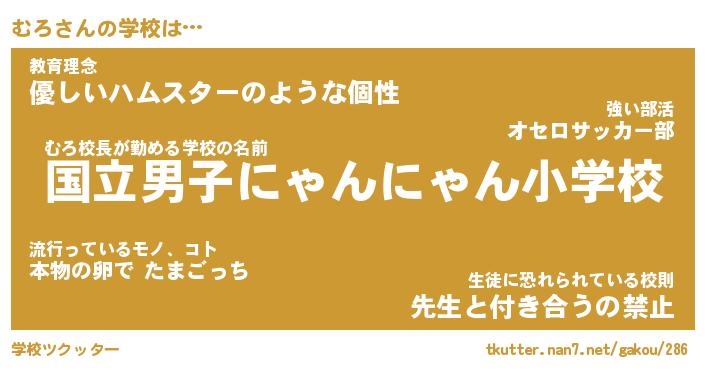 | 男性向けラノベタイトル風あだ名 | 『むろの憂鬱』『ノーゲーム・ノームロ』 |