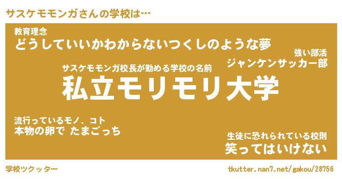 | 男性向けラノベタイトル風あだ名 | 『サスケモモンガの憂鬱』 |