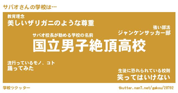 | ヒーロー風カッコイイあだ名 | 『スーパーサバオ』『ウルトラサバオマン』 |