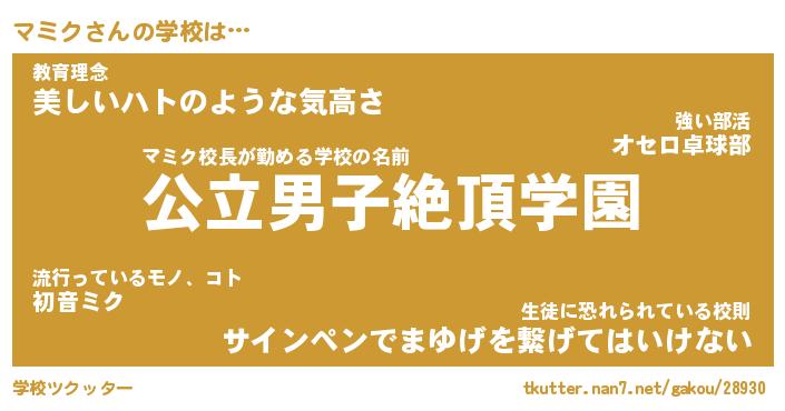 | 男性向けラノベタイトル風あだ名 | 『マミクの憂鬱』 |