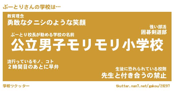 | 男性向けラノベタイトル風あだ名 | 『ぶーとりの憂鬱』 |