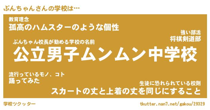 | 男性向けラノベタイトル風あだ名 | 『ぶんちゃんの憂鬱』 |