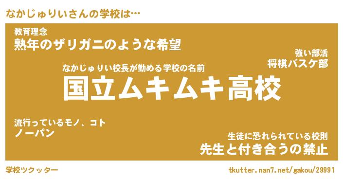 | 男性向けラノベタイトル風あだ名 | 『なかじゅりいの憂鬱』 |