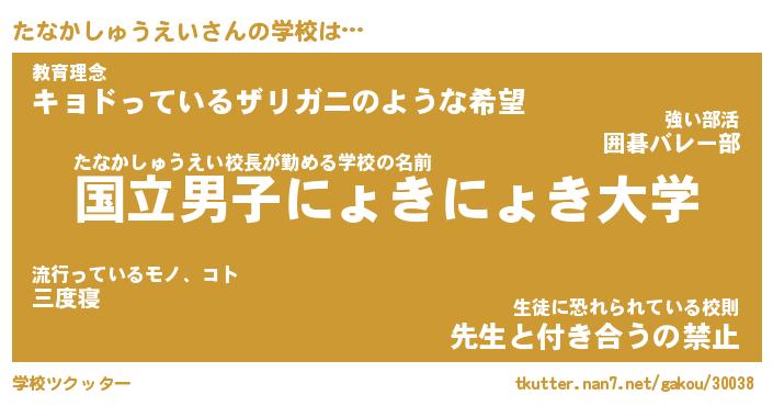| 男性向けラノベタイトル風あだ名 | 『たなかしゅうえいの憂鬱』 |