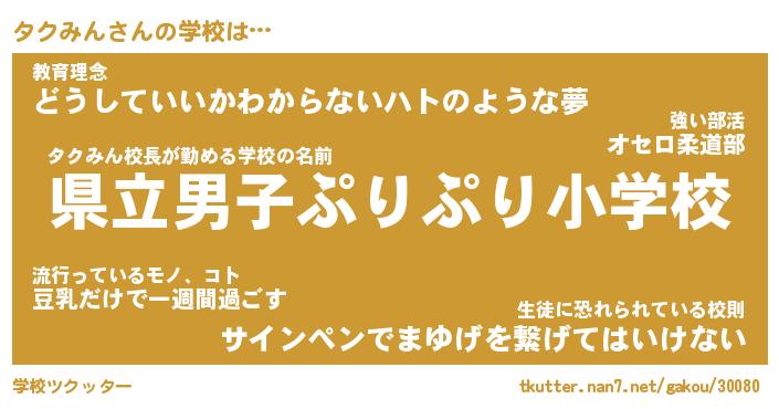| ヒーロー風カッコイイあだ名 | 『スーパータクミン』『黄金騎士タク』 |