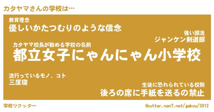 | ファンタジー風あだ名 | 『カタフェル』『エターナルカタヤマー』 |