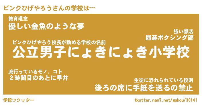 | 男性向けラノベタイトル風あだ名 | 『ピンクひげやろうの憂鬱』 |