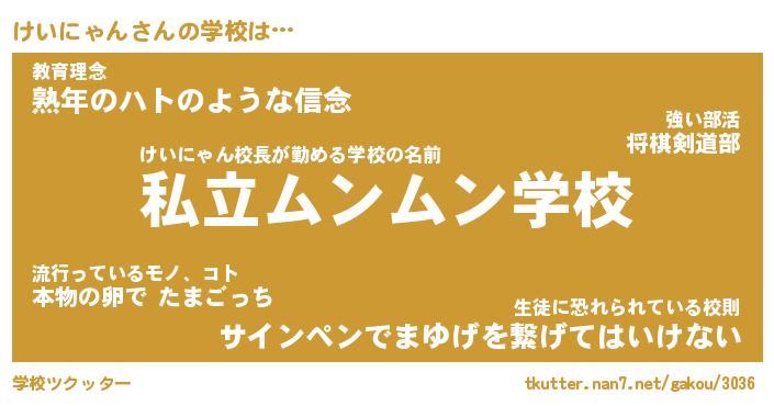 | 男性向けラノベタイトル風あだ名 | 『けいにゃんの憂鬱』 |