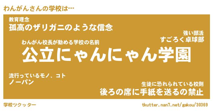 | 男性向けラノベタイトル風あだ名 | 『わんがんの憂鬱』 |
