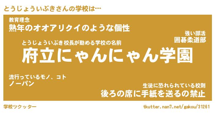 | 男性向けラノベタイトル風あだ名 | 『とうじょういぶきの憂鬱』 |
