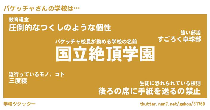 | ヒーロー風カッコイイあだ名 | 『スーパーバケッチャ』『暗黒騎士バケ』 |