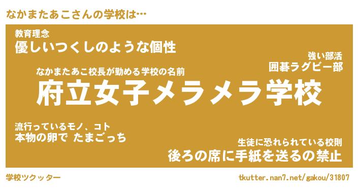 | ヒーロー風カッコイイあだ名 | 『スーパーナカマタアコ』『暗黒騎士ナカ』 |
