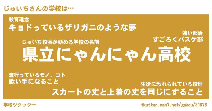 | 男性向けラノベタイトル風あだ名 | 『じゅいちの憂鬱』 |