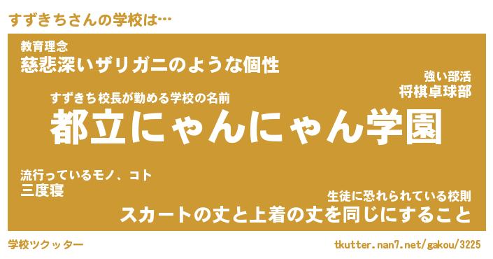 | 男性向けラノベタイトル風あだ名 | 『すずきちの憂鬱』 |