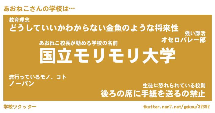 | 男性向けラノベタイトル風あだ名 | 『あおねこの憂鬱』 |