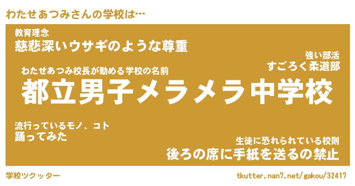 | 恥ずかしいあだ名 | 『プリティーわたせあつみ』『わたっちょ』 |