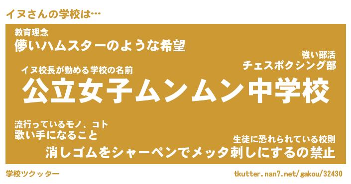 | ファンタジー風あだ名 | 『イヌフェル』『エターナルイヌー』 |