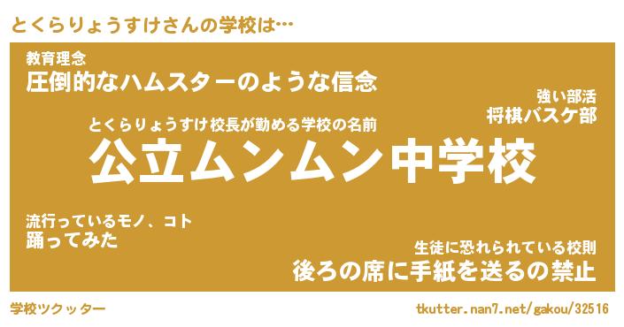 | 男性向けラノベタイトル風あだ名 | 『とくらりょうすけの憂鬱』 |
