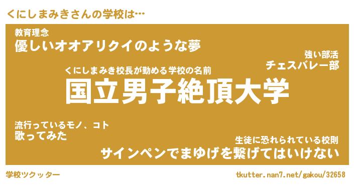 | 男性向けラノベタイトル風あだ名 | 『くにしまみきの憂鬱』 |