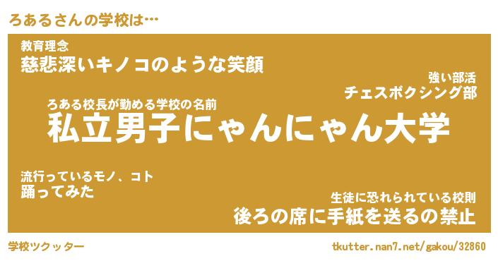 | 男性向けラノベタイトル風あだ名 | 『ろあるの憂鬱』 |