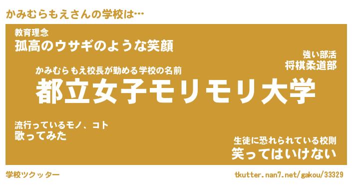 | 恥ずかしいあだ名 | 『プリティーかみむらもえ』『かみっちょ』 |