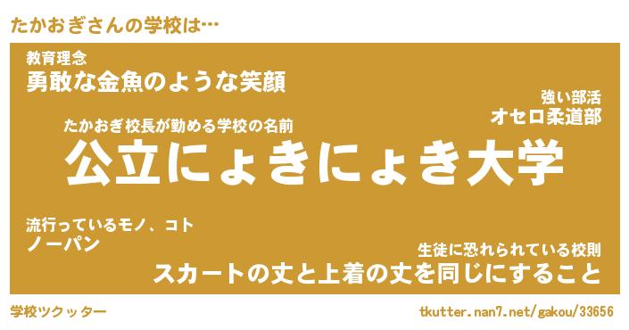 | ポケモン風あだ名 | 『タカチュウ』『タカオダネ』 |