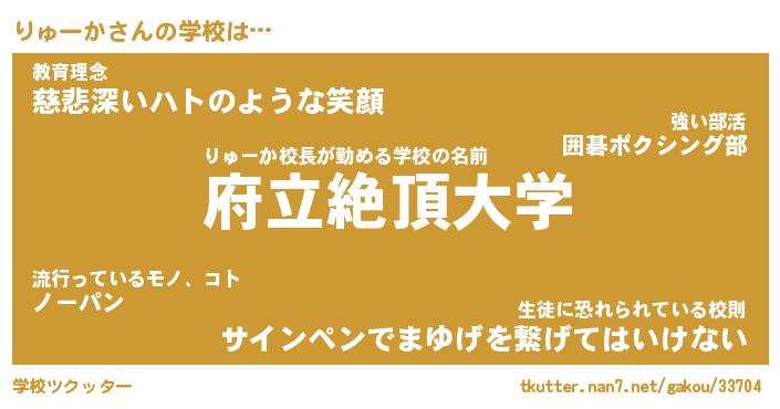 | 男性向けラノベタイトル風あだ名 | 『りゅーかの憂鬱』 |