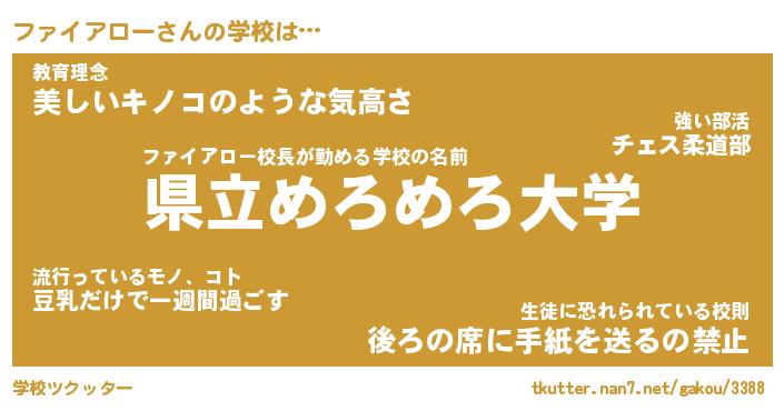 | 男性向けラノベタイトル風あだ名 | 『ファイアローの憂鬱』 |