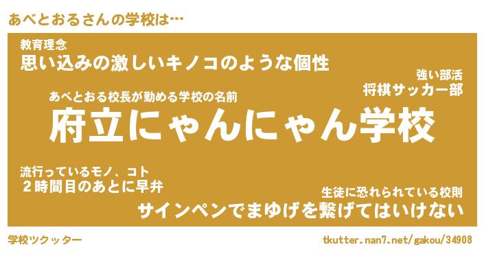 | 男性向けラノベタイトル風あだ名 | 『あべとおるの憂鬱』 |