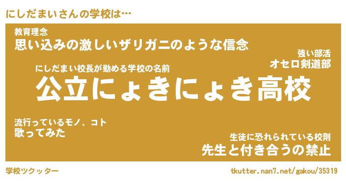 | 男性向けラノベタイトル風あだ名 | 『にしだまいの憂鬱』 |