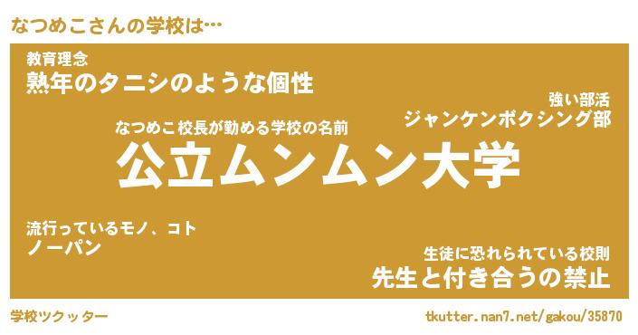 | 意味不明あだ名 | 『ペロリンなつめこ』『永久保存なつめこ』 |