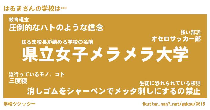 | ヒーロー風カッコイイあだ名 | 『スーパーハルマ』『ウルトラはるまマン』 |