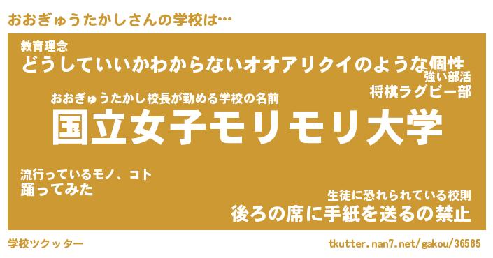 | 番長 | おおぎゅうたかし、またの名を・・・!『マザコンおおぎゅうたかし番長』 |