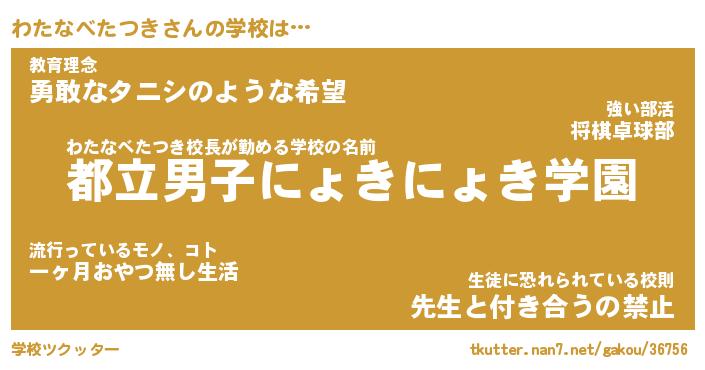 | ヘコむあだ名 | 『わたにゅー』『豆乳』『わたを』 |