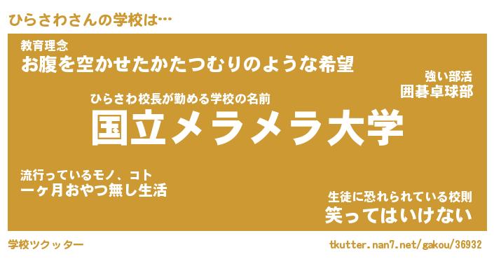 | ヒーロー風カッコイイあだ名 | 『スーパーヒラサワ』『天弓騎士ヒラ』 |
