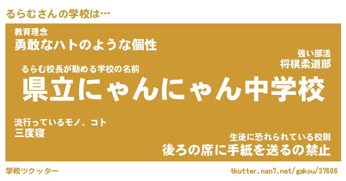 | 男性向けラノベタイトル風あだ名 | 『るらむの憂鬱』 |