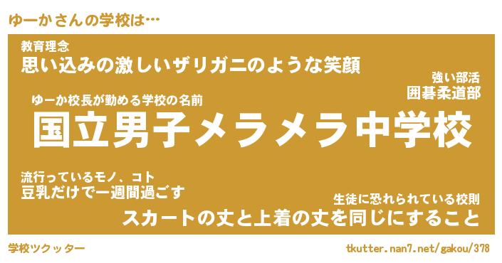 | 胡散臭い通販商品みたいなあだ名 | 『モテモテ間違いなしブレスレット…その名も「ゆーか」』 |