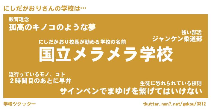 | 肩書あだ名 | 『にしだかおり社長』『にしだかおり担任』 |