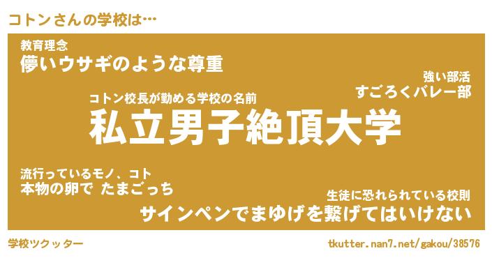 | 男性向けラノベタイトル風あだ名 | 『コトンの憂鬱』 |